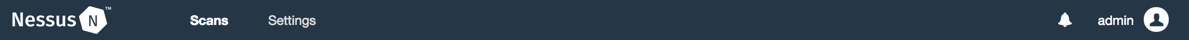 The top navigation bar shows links to the two main pages: Scans and Settings. You can perform all Tenable Nessus primary tasks using these two pages. Click a page name to open the corresponding page.