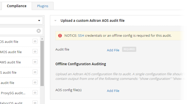 Click Add File. Select the custom audit file to upload from your machine.