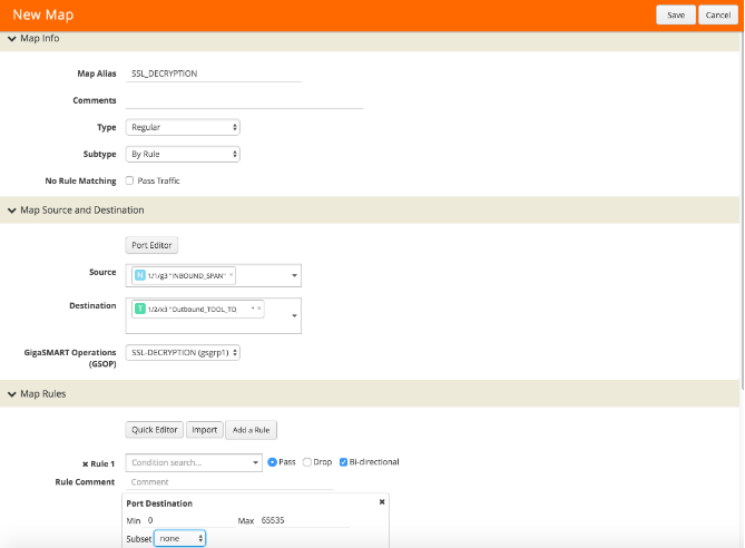 - In the Destination drop-down box, select the tool port you created in Configure the Tool Port.