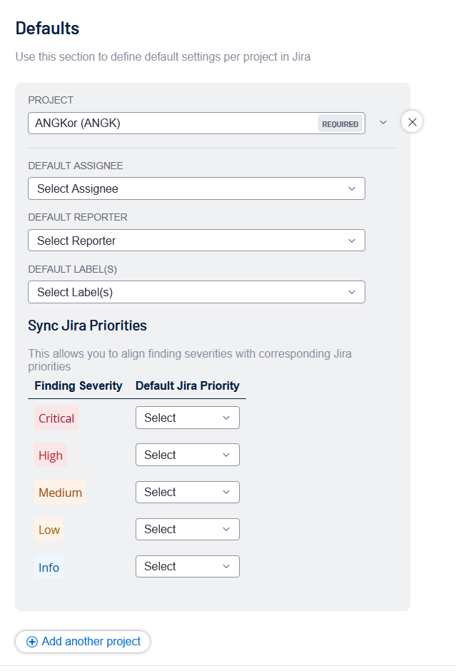 Note: You see this option only if you choose New findings create subtasks on an existing ticket.Project The Jira project in which you want tickets to be created.