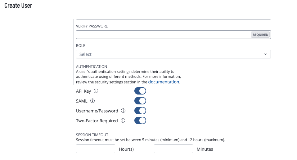 Admins can now set session timeouts when creating new users or updating existing ones (individually or in bulk). The default remains 30 minutes, but timeouts can now be configured anywhere from 5 minutes to 12 hours.