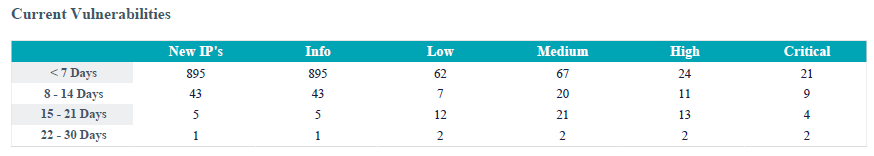 A matrix element is a type of text element you can insert into a Tenable Security Center report definition. For more information on text elements, see Configure a Text Element in a Report.