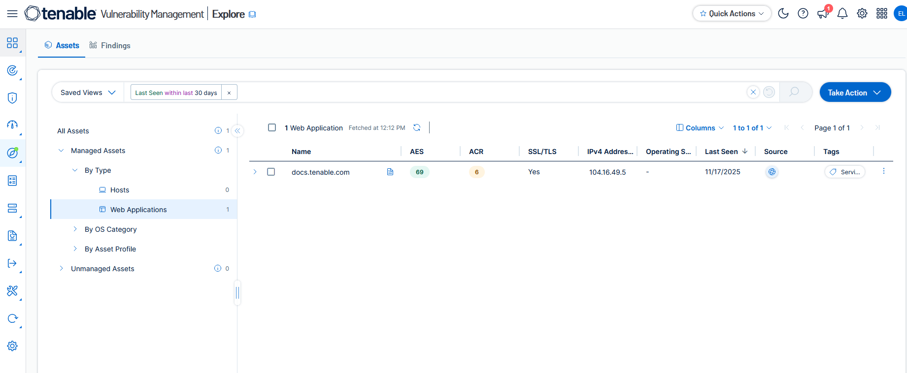 On the Assets page, you can view all the assets in your environment known to Tenable Vulnerability Management. These are broken down by asset type.