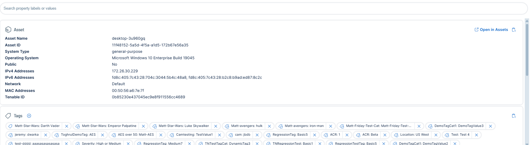 | Tags | A panel containing tags assigned to the affected asset. Click |