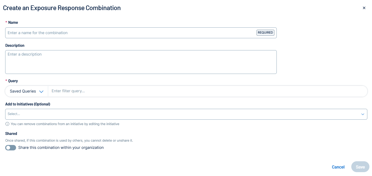 Shared (Optional) Enable this toggle to share the combination with your organization in the Shared tab. -