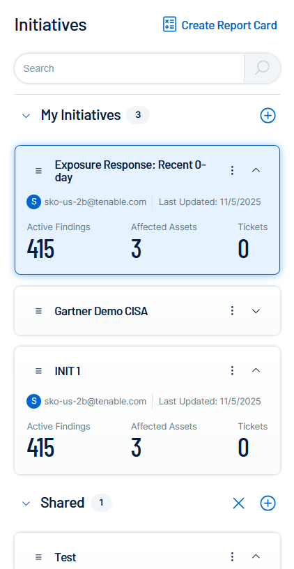 Tip: Click Assets or Findings to navigate directly to the My Affected Assets or My Findings lists on the Initiatives page, respectively.