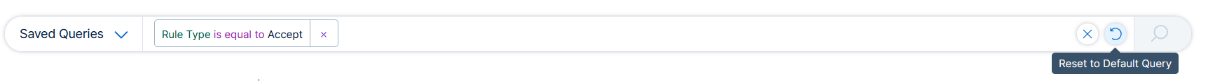 button inside the query builder.This clears the current query and applies the default query set by either the user or Tenable Vulnerability Management. If there is no default query, then this will apply an empty query.