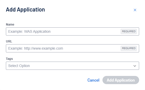 Note: You can also use the Add Application feature form the Applications Dashboard in Tenable Web App Scanning.