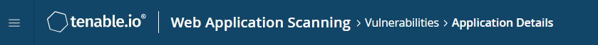 In the Tenable Web App Scanning interface, certain pages display breadcrumbs in the top navigation bar. From left to right, the breadcrumbs show the path of pages you visited to reach your current page: