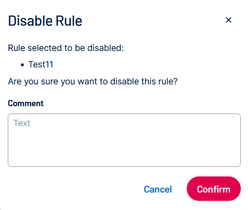The system pauses the rule but keeps it in the system. The rule is not applied to future findings until it is re-enabled.