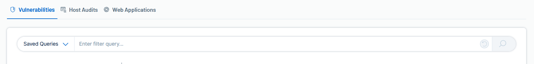 button inside the query builder.This clears the current query and applies the default query set by either the user or Tenable Web App Scanning. If there is no default query, then this will apply an empty query.